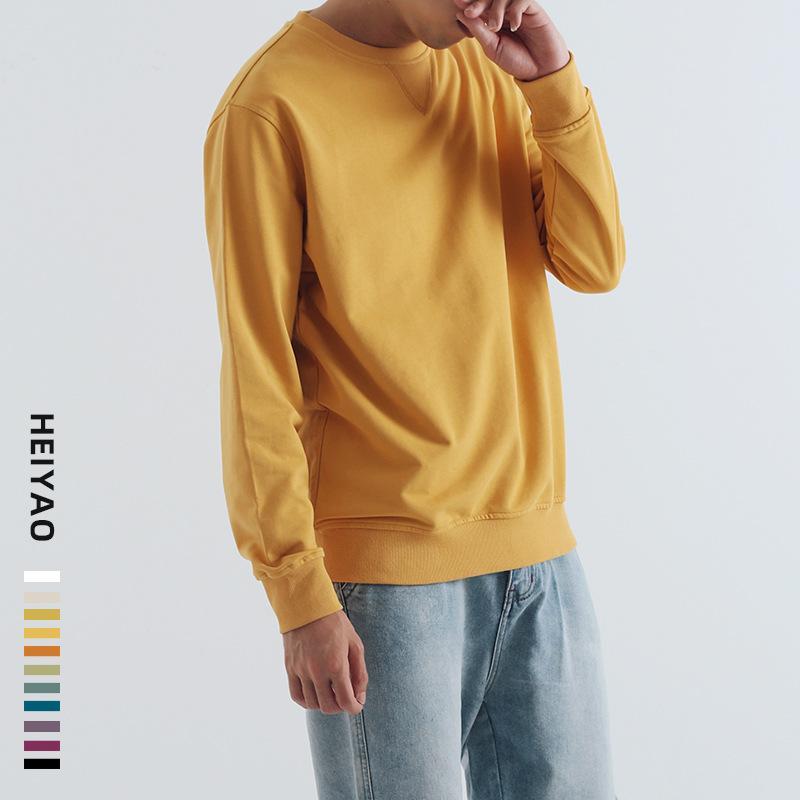 Egg yellow 320G solid round neck couple's top men's long sleeve sweater